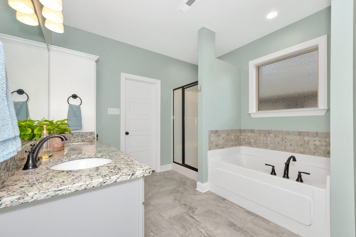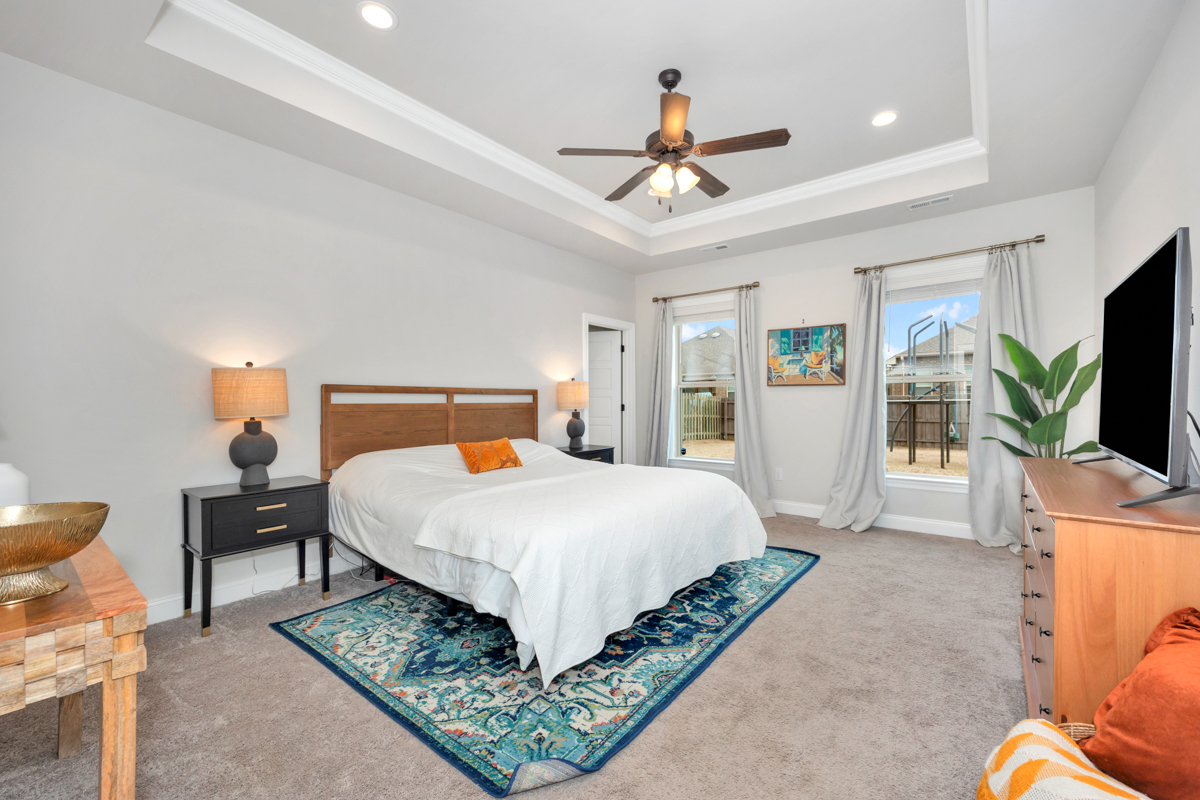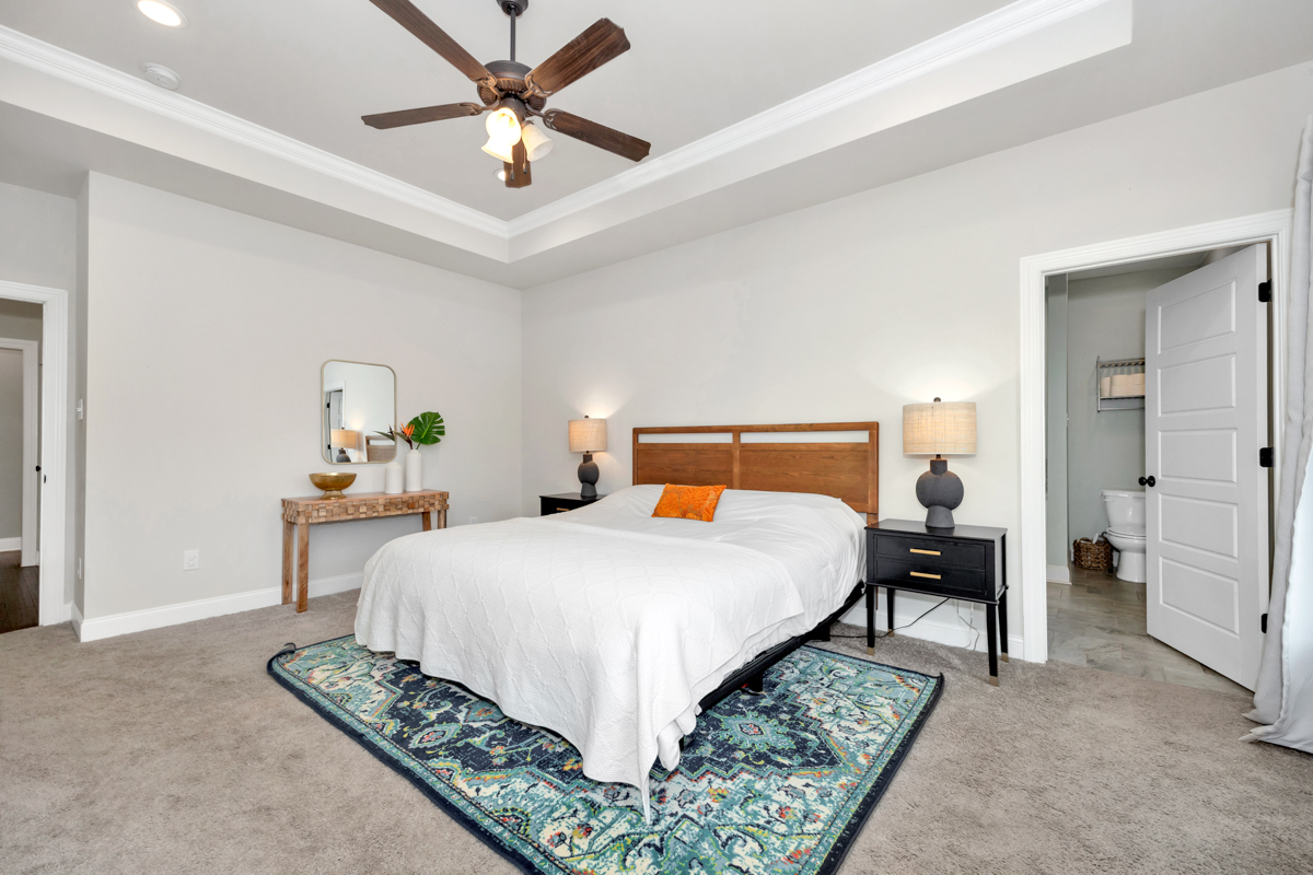 Unwind in the spacious primary suite featuring a trey ceiling, walk-in closet, and a luxurious en-suite bathroom with: