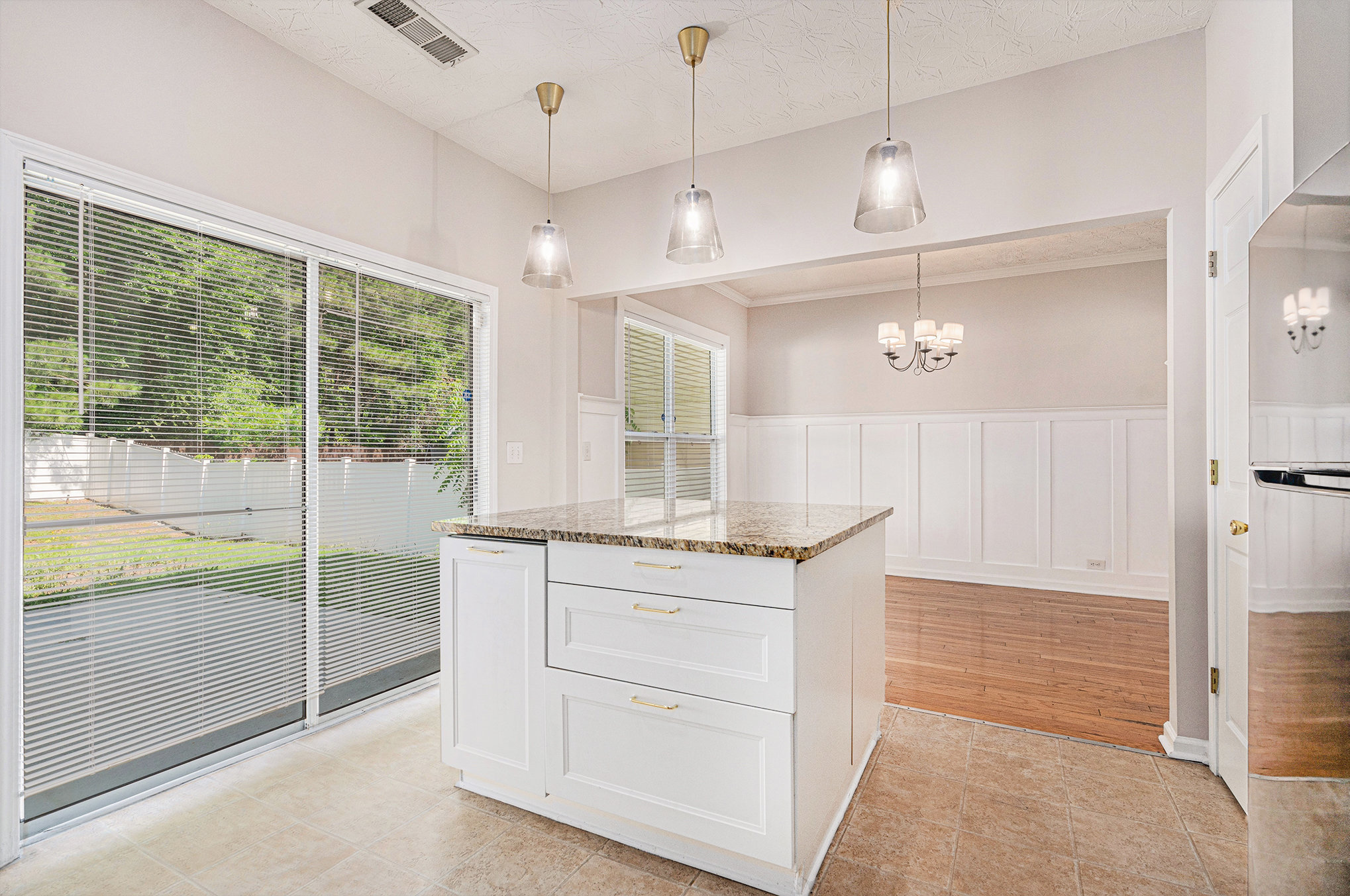 The spacious kitchen is a standout with granite countertops, generous cabinet and counter space, and a center island perfect for meal prep and casual dining. Step directly onto the patio for effortless indoor-outdoor living, making gatherings and backyard enjoyment a breeze.