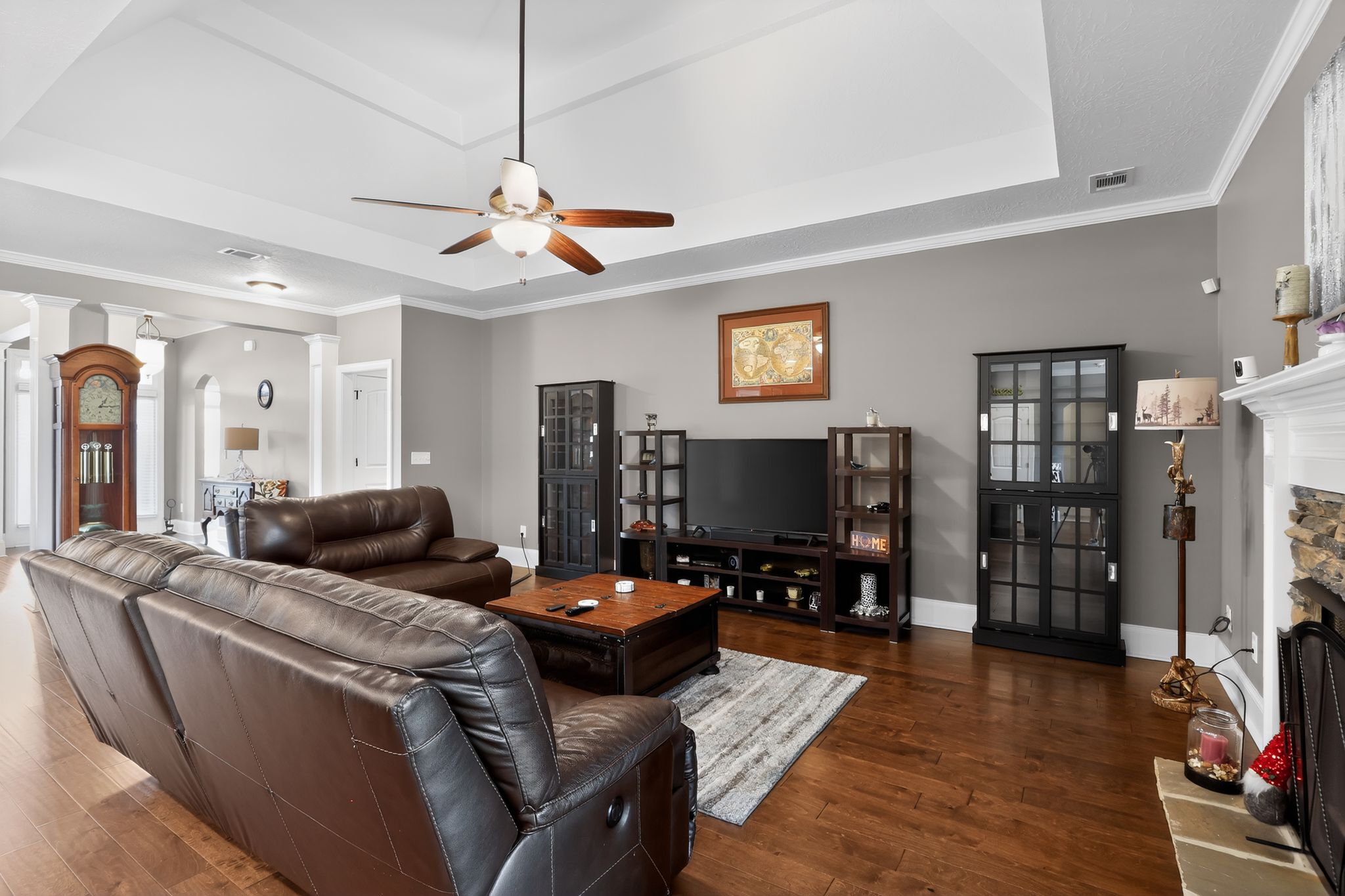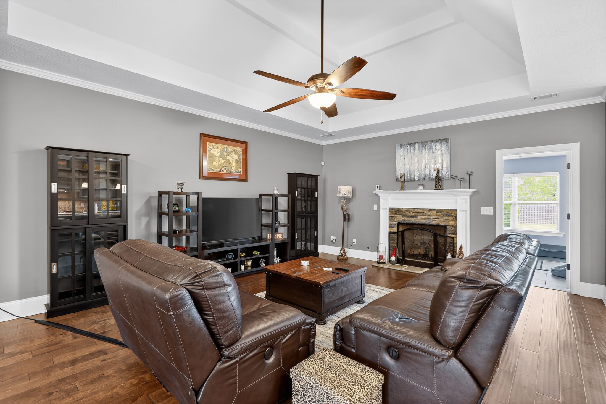 Relax year-round in the heated sunroom, ideal for morning coffee or casual gatherings. The owner’s suite offers a private retreat with a sitting area, tray ceiling, oversized walk-in closet, dual vanities, soaking tub, and a walk-in shower with dual shower heads. Bedrooms two and three share a convenient Jack-and-Jill bath, while the fourth bedroom is perfect for a home office or guest space.