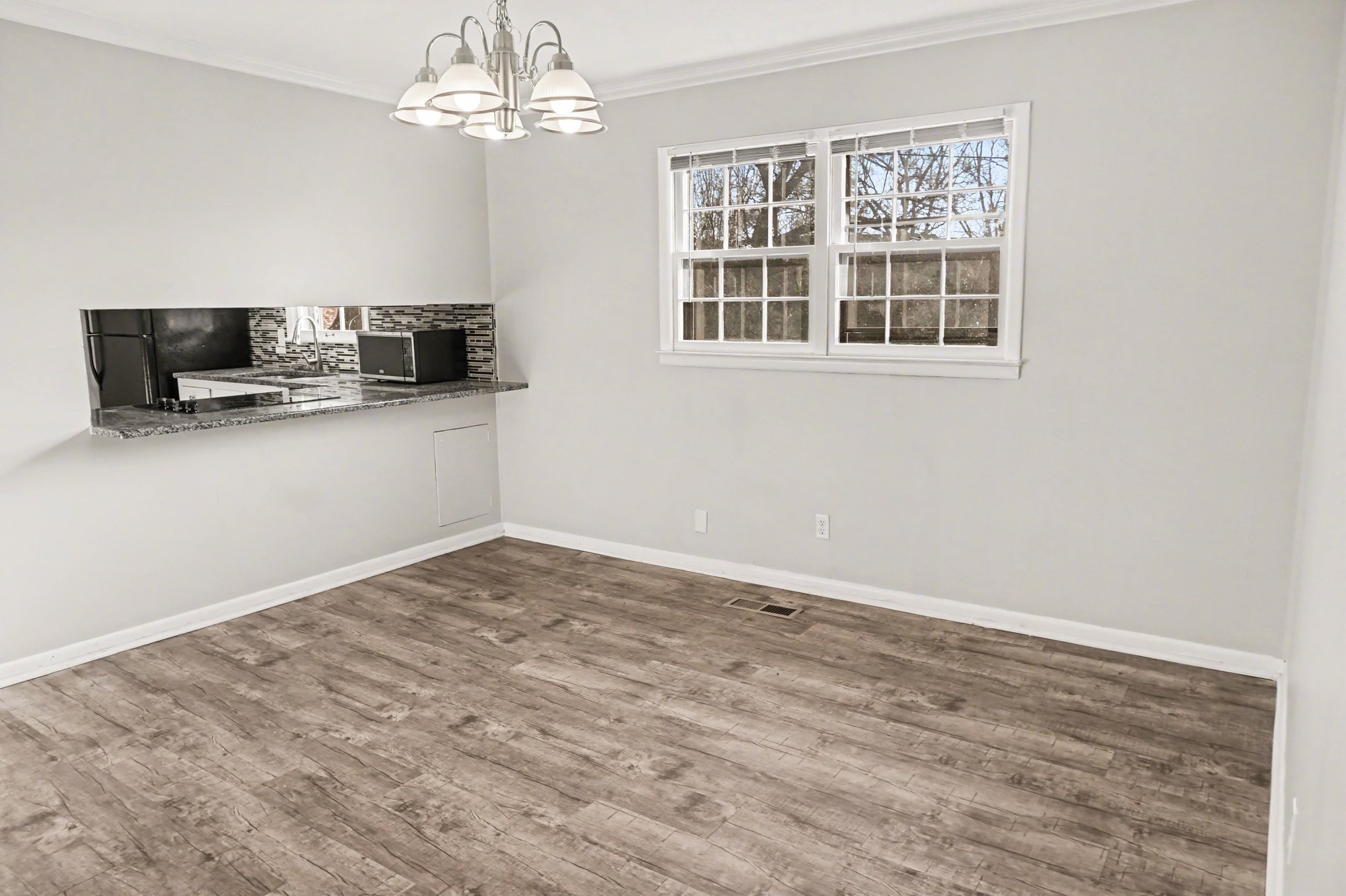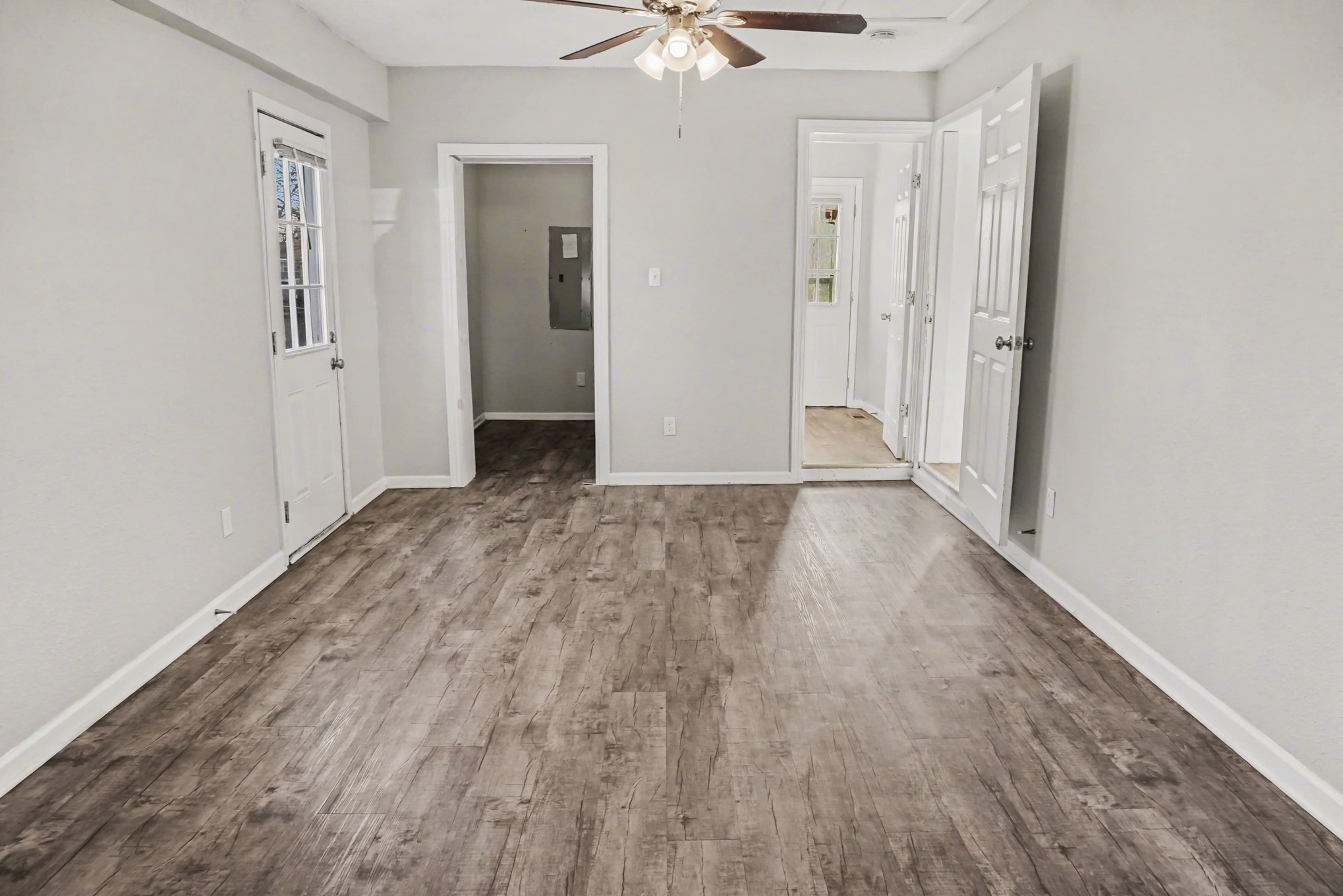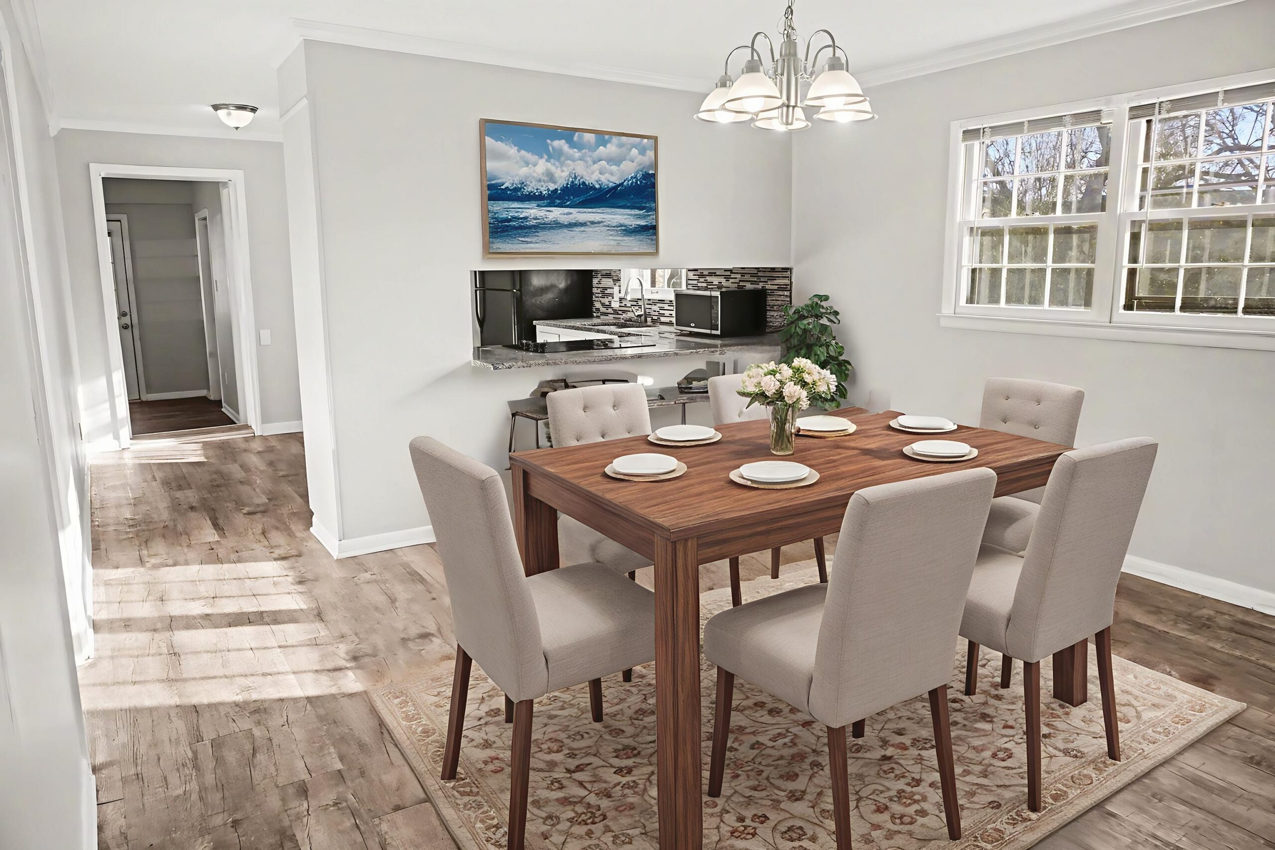 Step inside to a bright, freshly painted interior in soft neutral tones, complemented by sleek flooring throughout that creates a modern, cohesive feel. The spacious living room provides the perfect gathering space for relaxing evenings, movie nights, or entertaining guests.