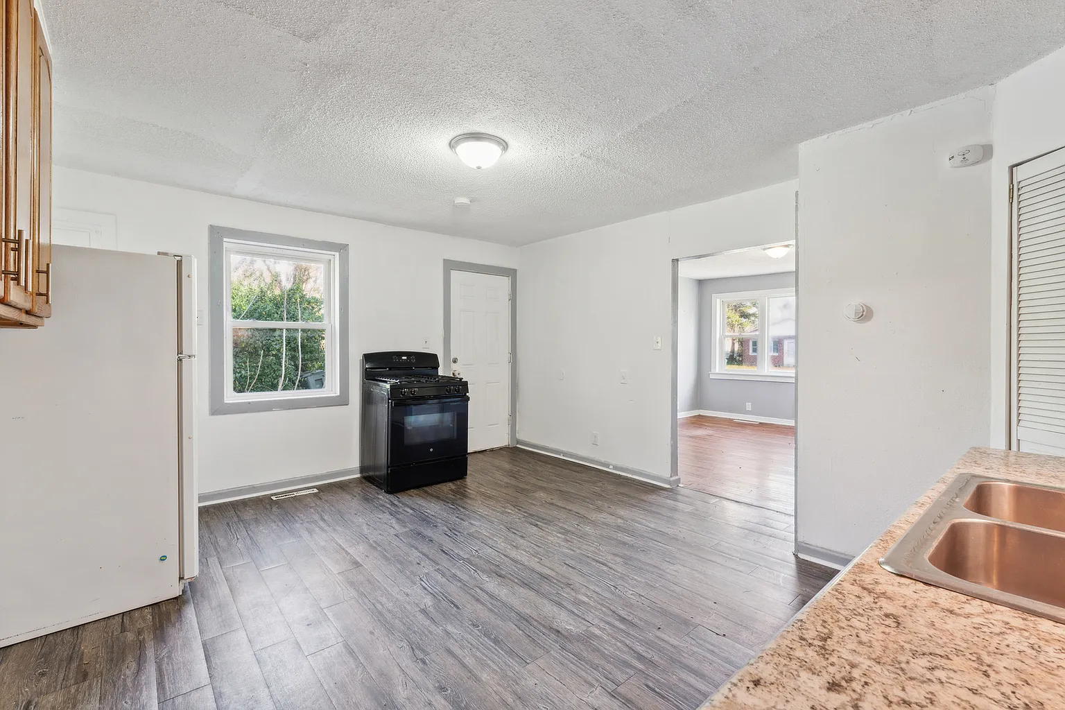 The airy kitchen includes a refrigerator and range, giving you everything you need to prepare your favorite seasonal recipes with ease. Natural light fills the home, adding to the cozy, comfortable feel in each room.