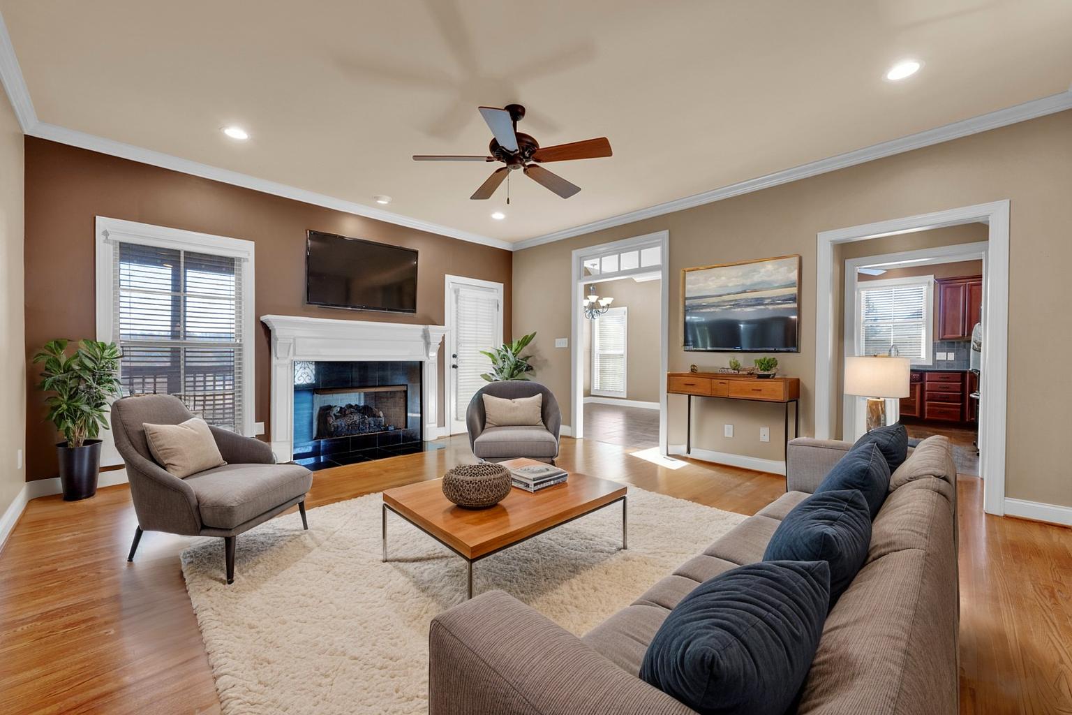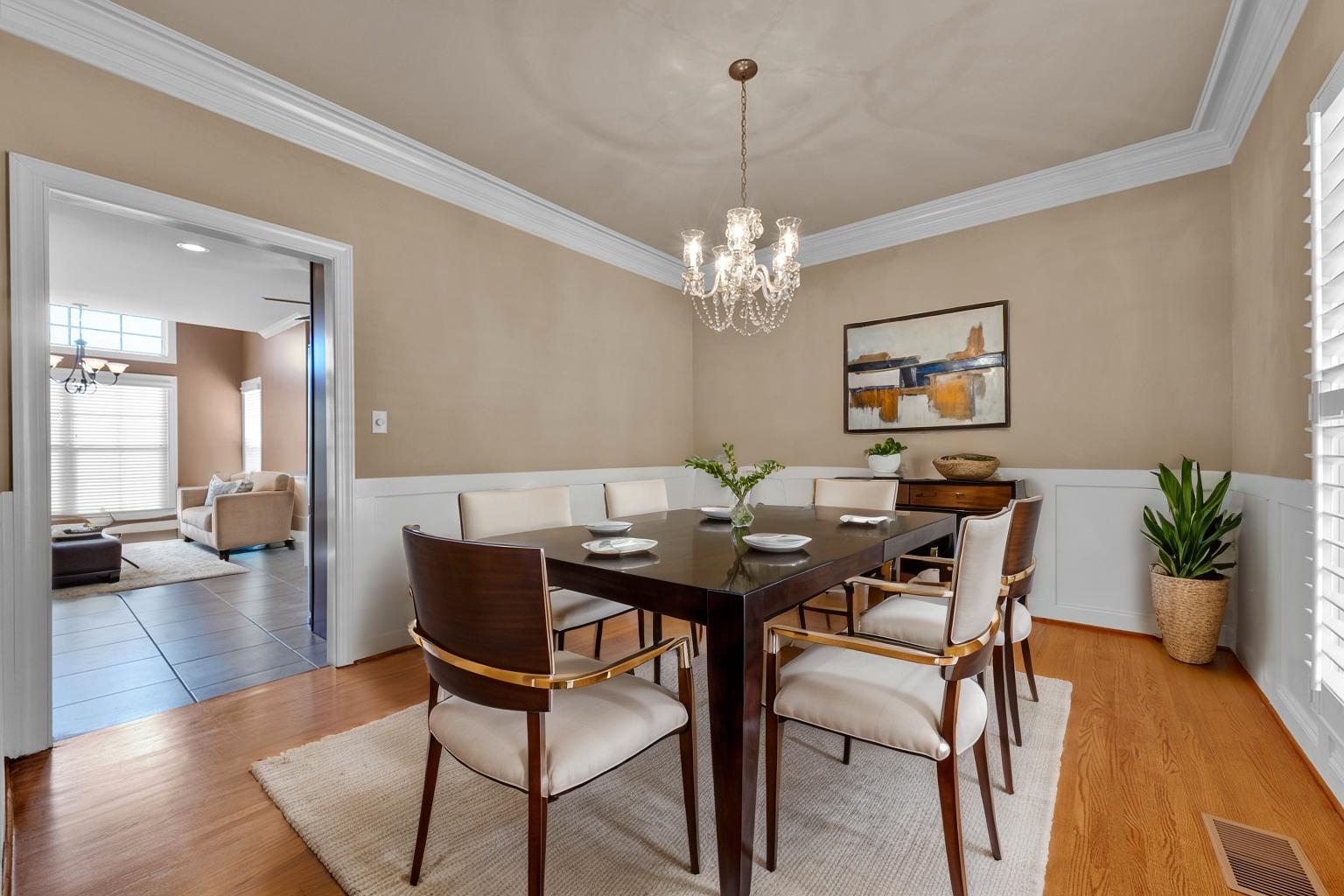The sun-filled living room welcomes you with abundant natural light and a cozy gas fireplace, making it ideal for both everyday living and entertaining. A formal dining room featuring classic wainscoting adds timeless elegance for hosting holidays and special occasions.