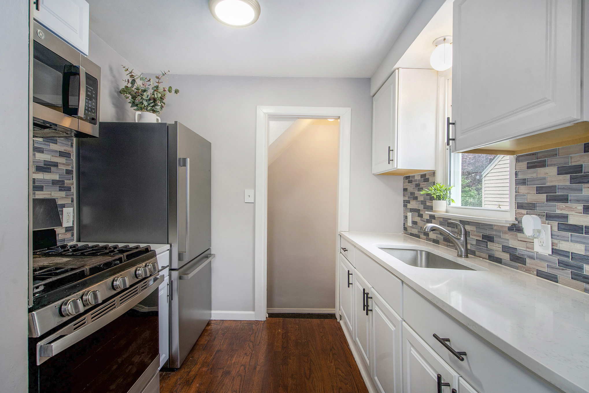 ✔️ Renovated kitchen with quartz counters, SS appliances & glass backsplash