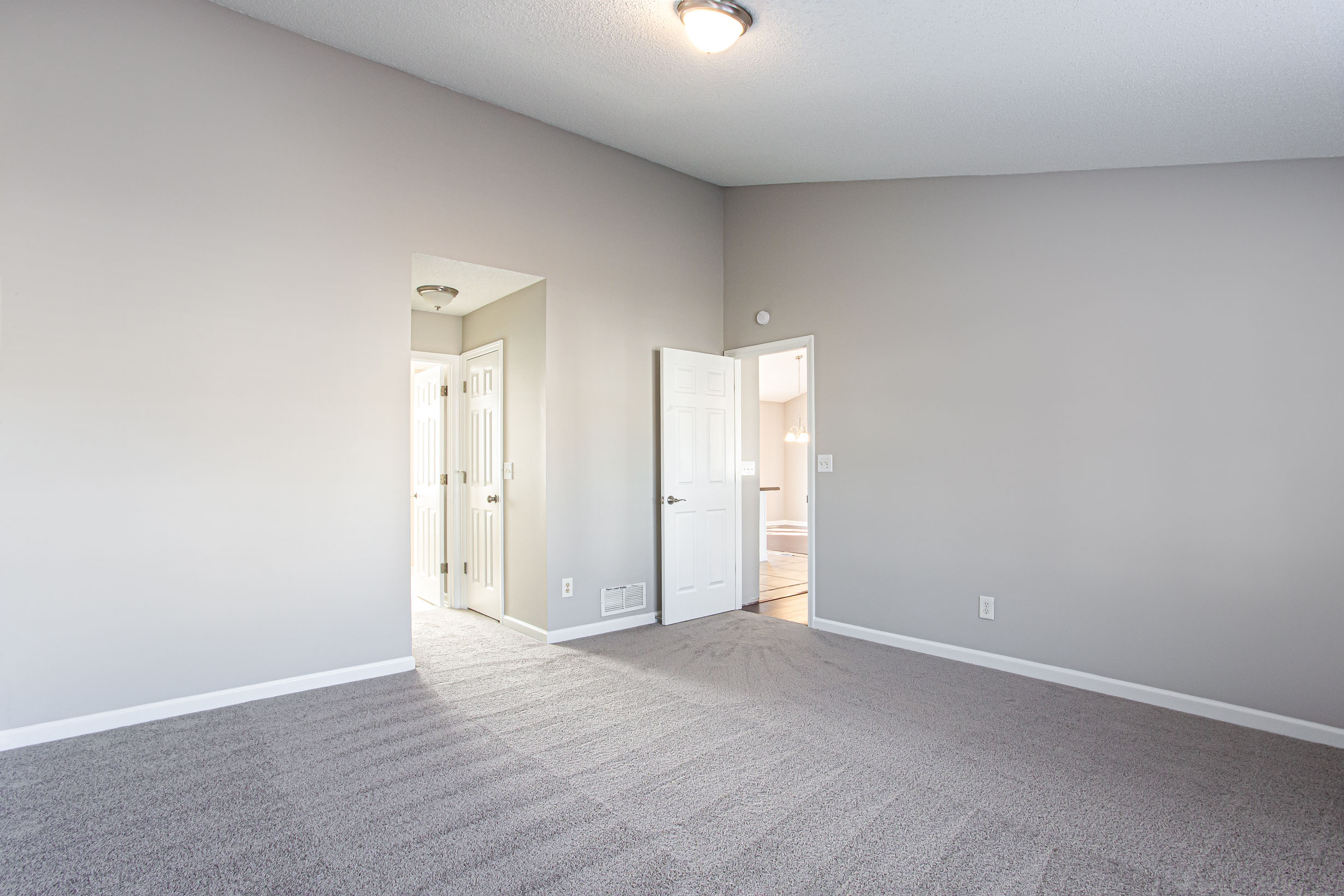 Main-Level Primary Suite: Vaulted ceiling, dual walk-in closets, and ensuite bathroom with dual vanities for a private retreat.