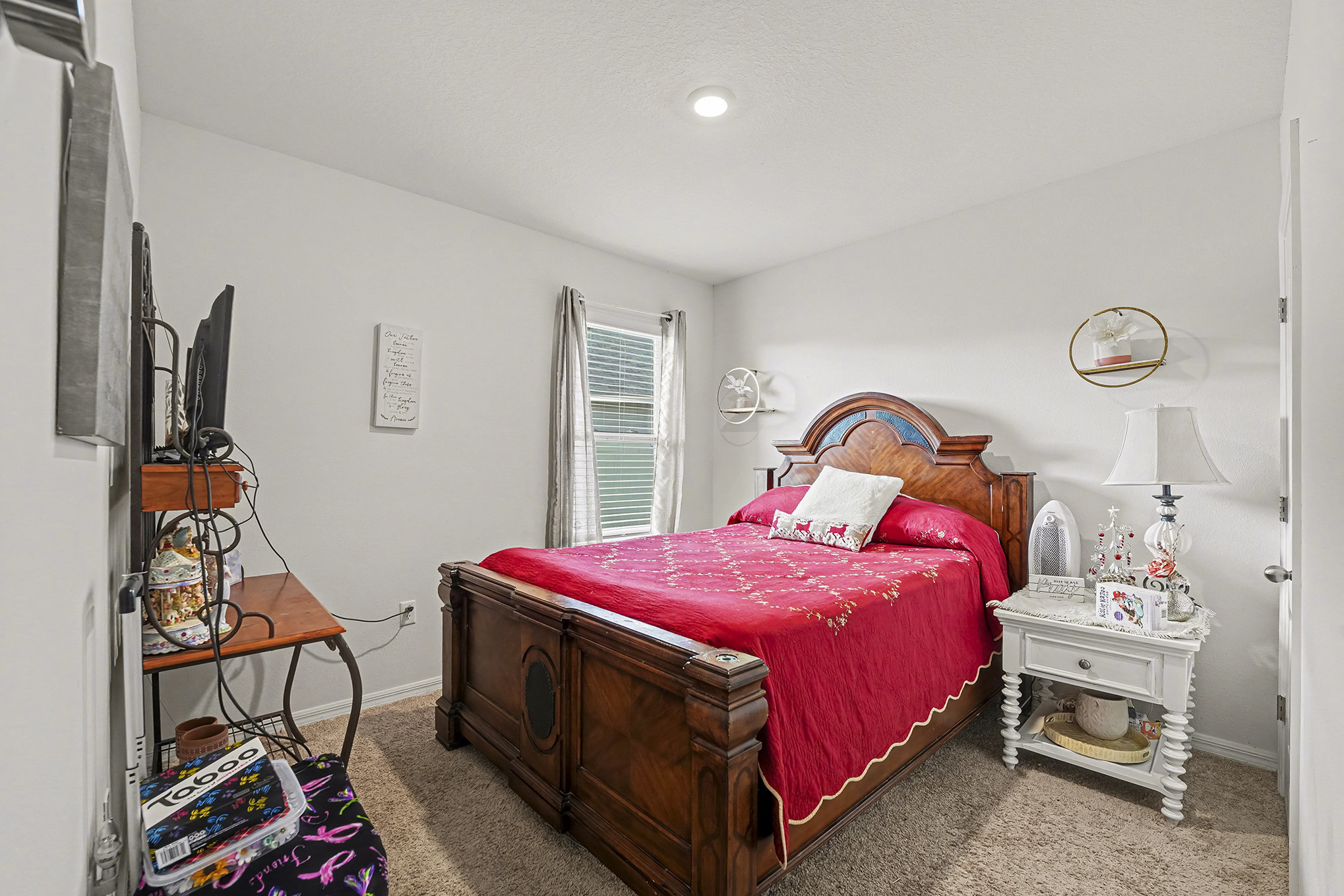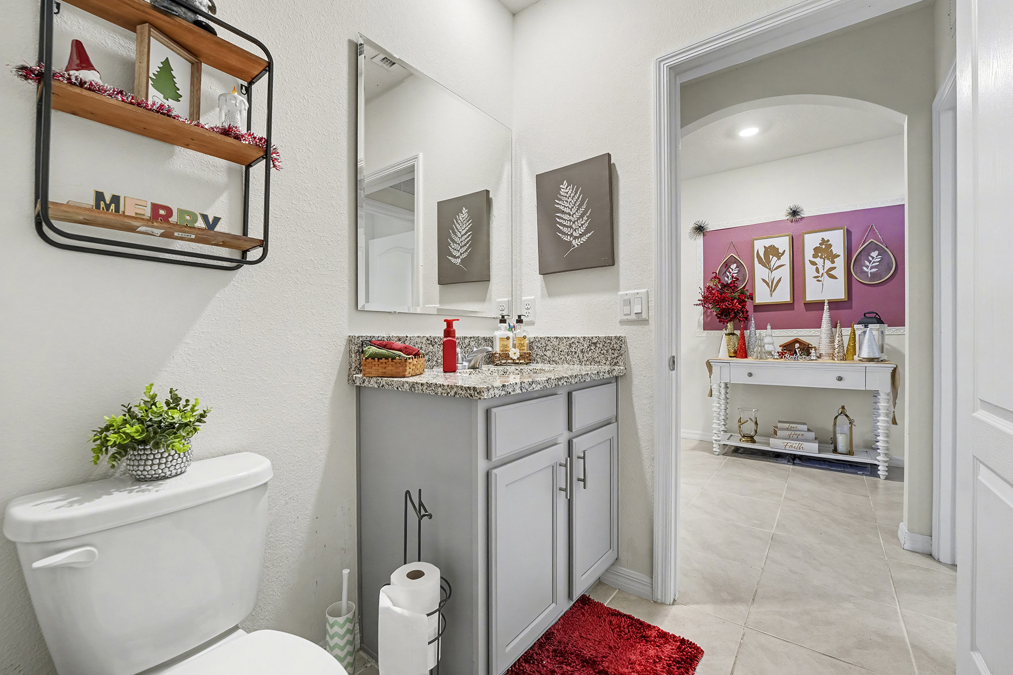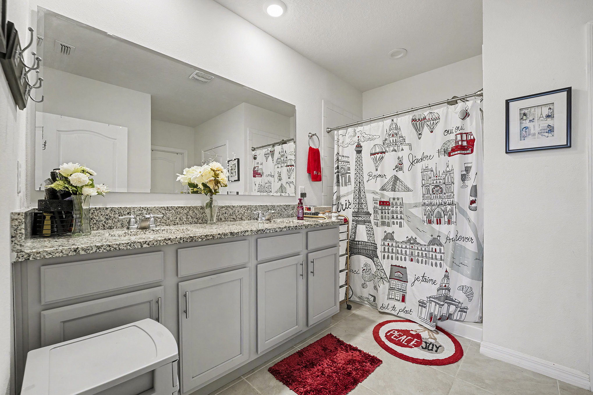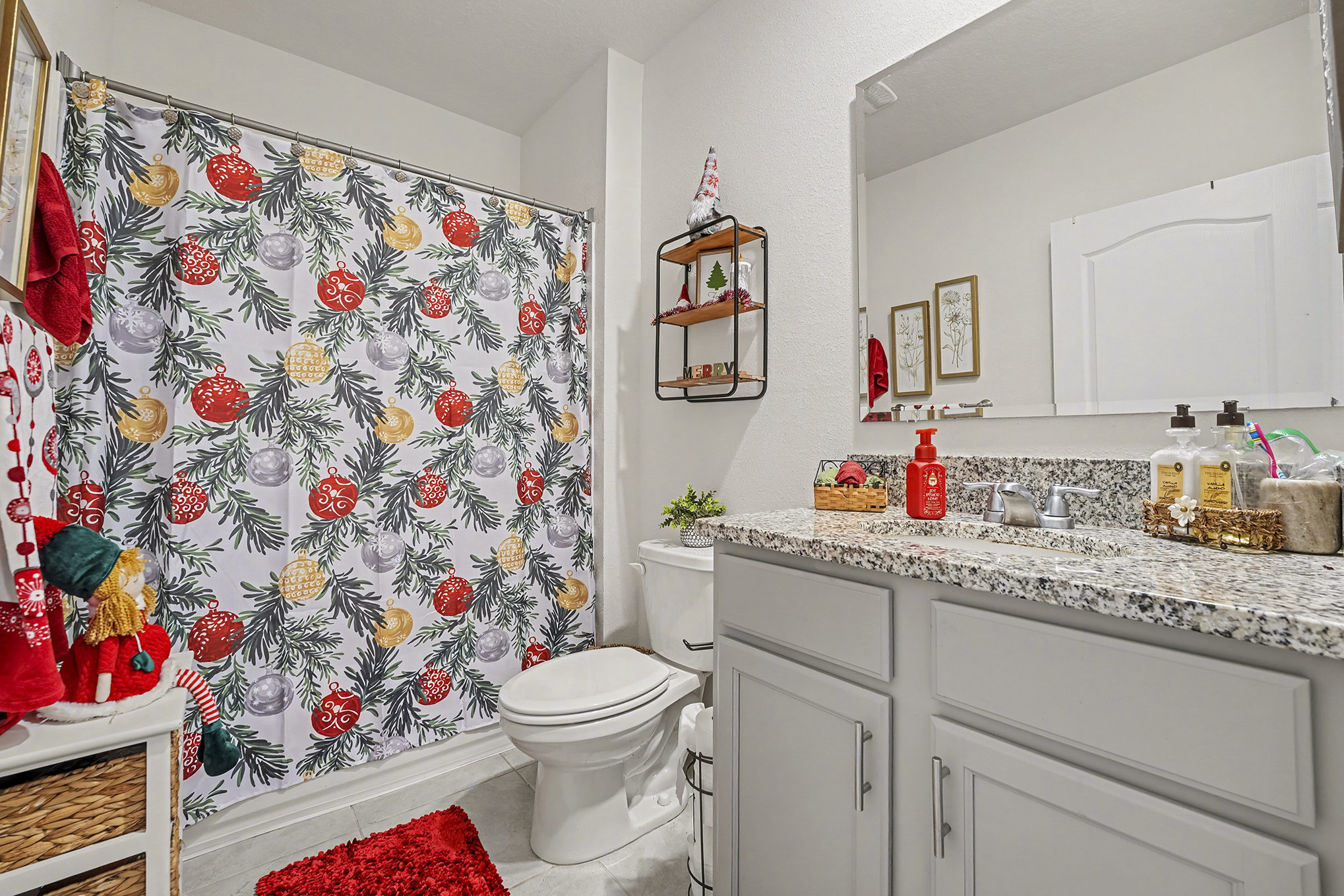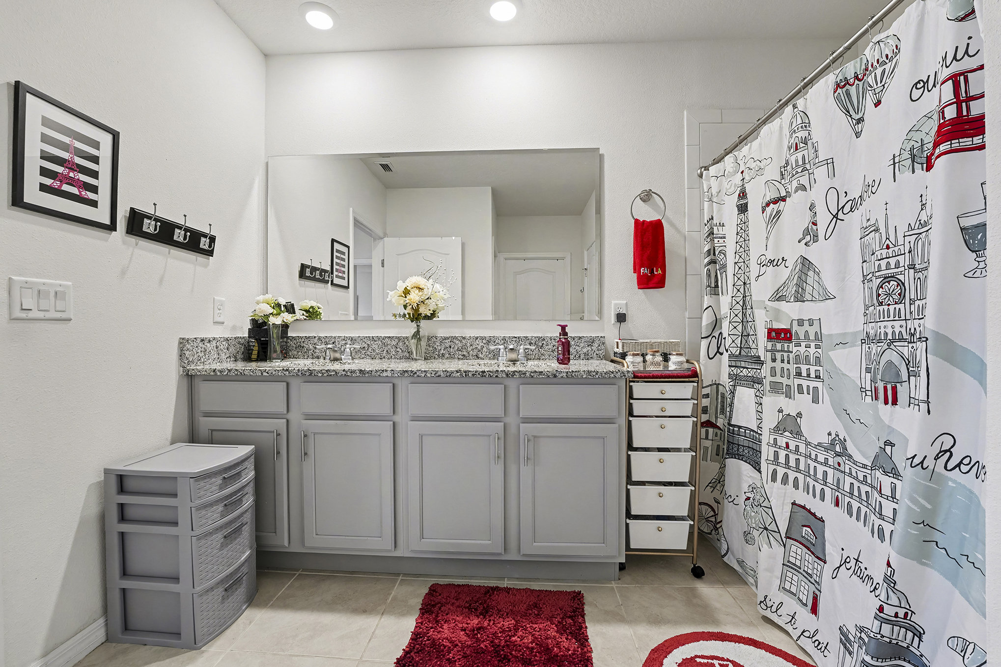 The primary suite offers a peaceful retreat with generous closet space and a private en-suite bathroom featuring dual sink vanities. Three additional bedrooms provide flexibility for guests, a home office, or growing households.
