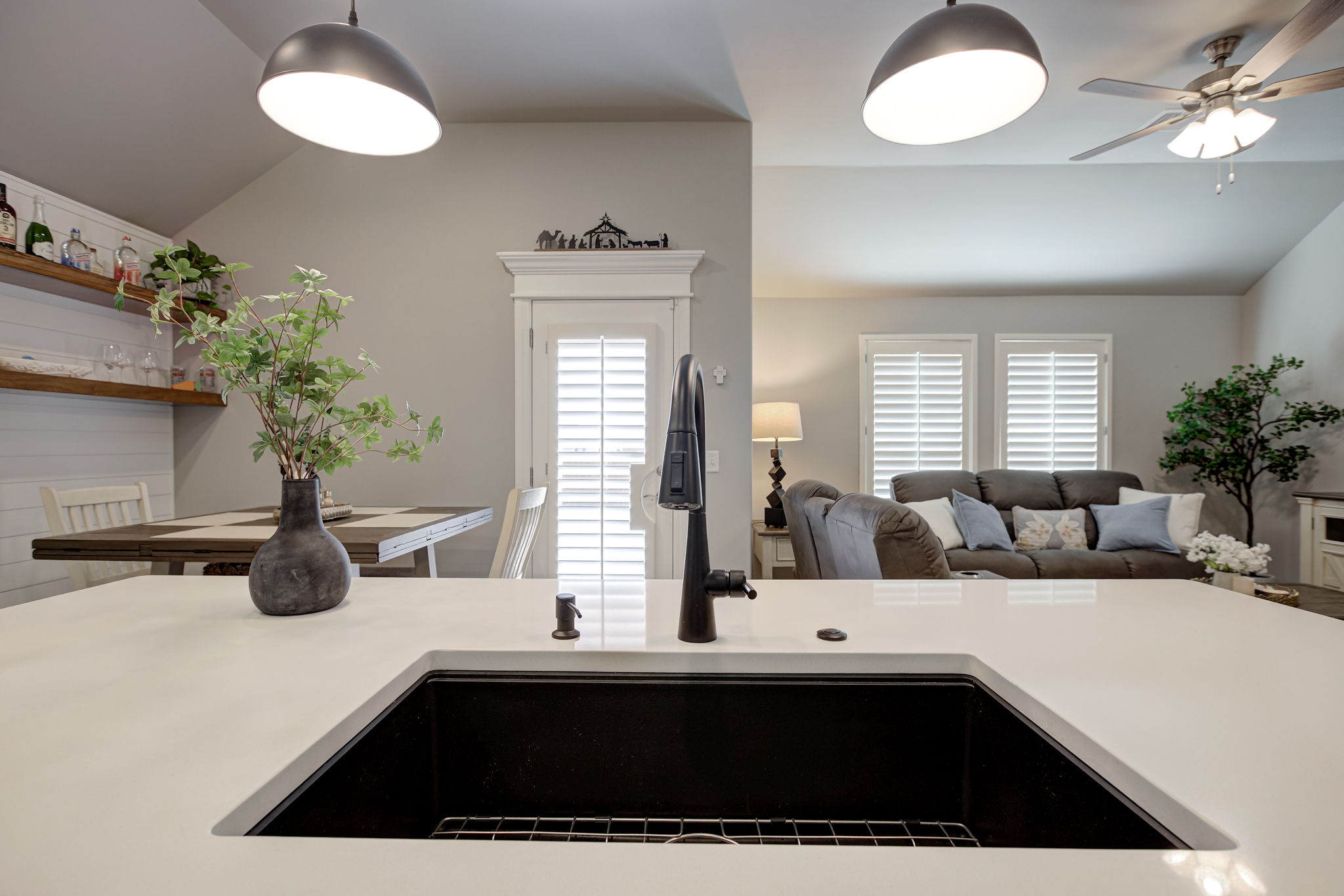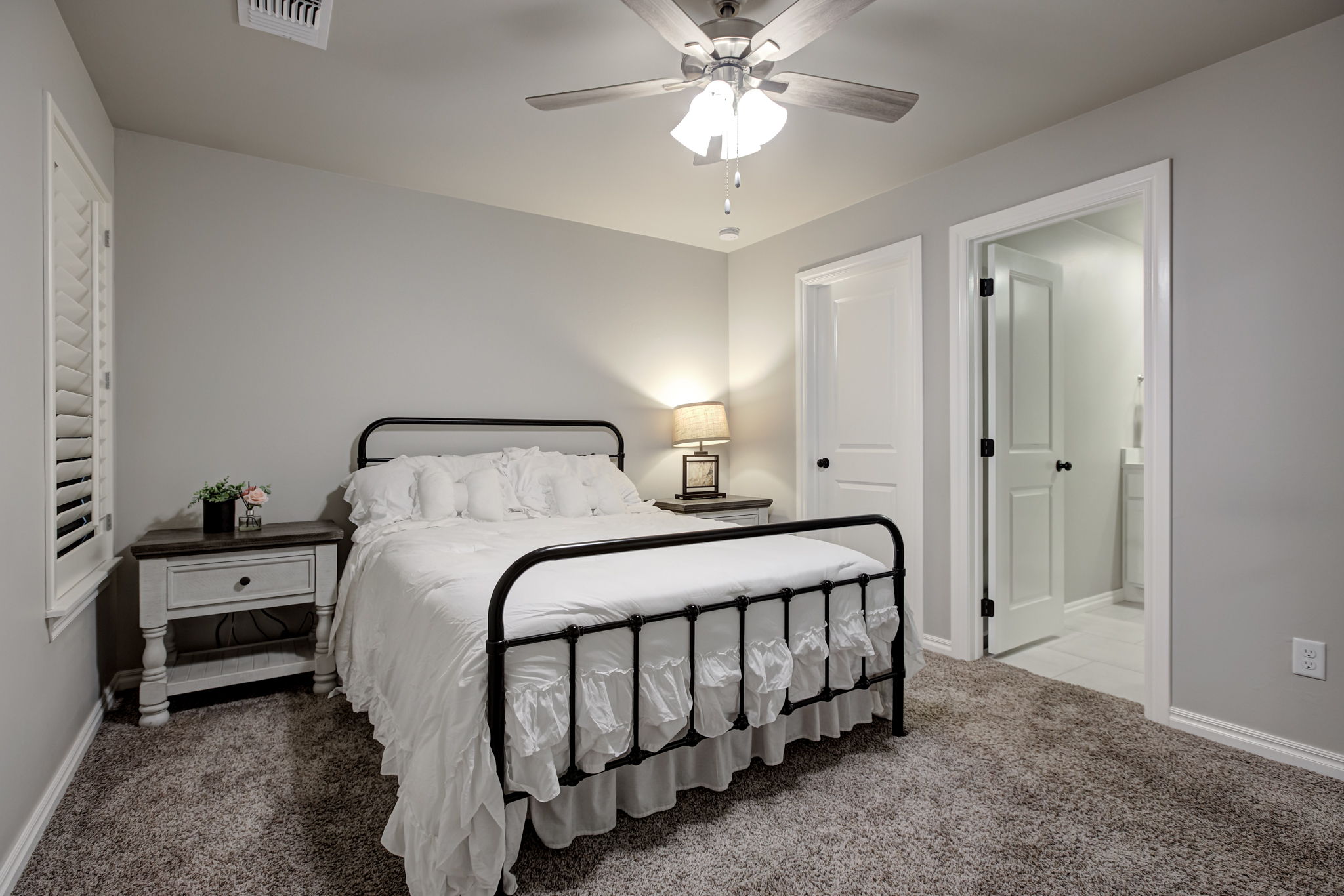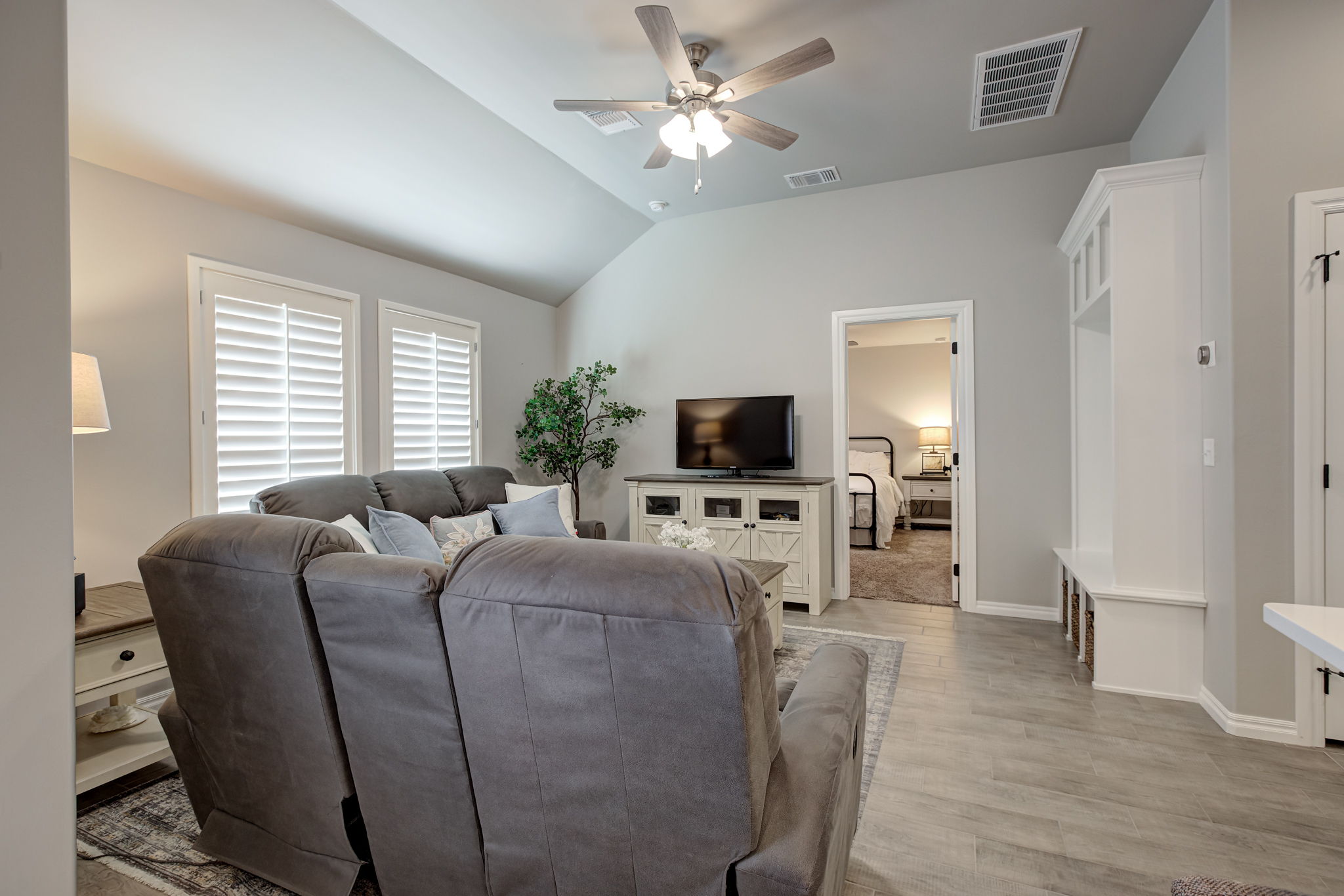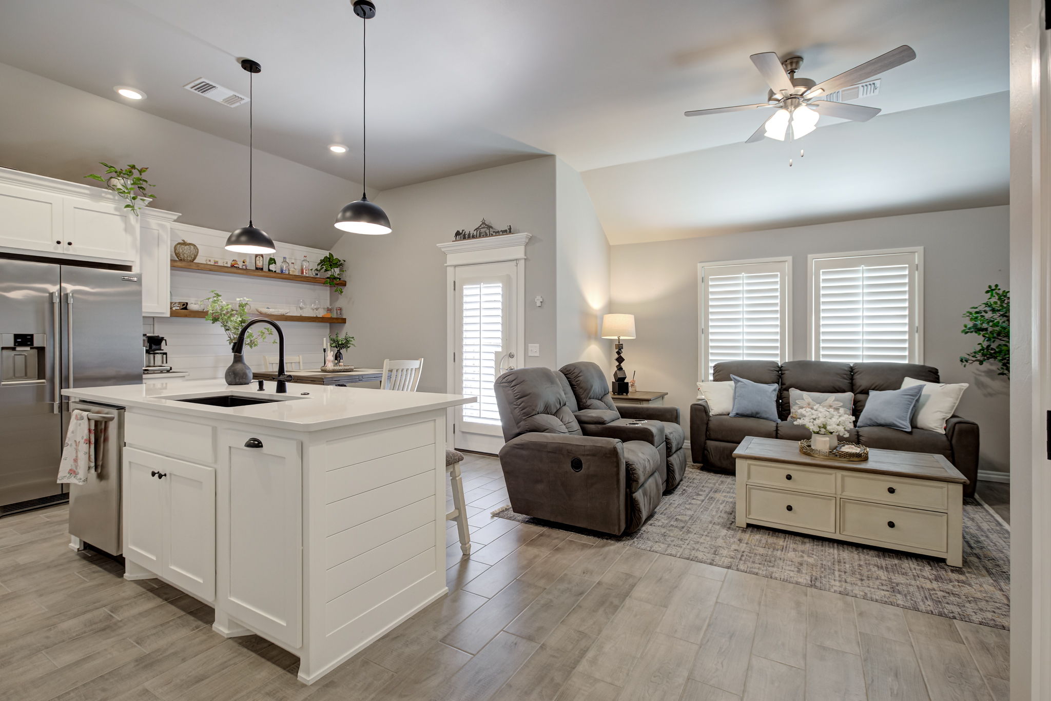 Additional features include custom plantation shutters throughout, delivering timeless elegance, natural light control, and added privacy.