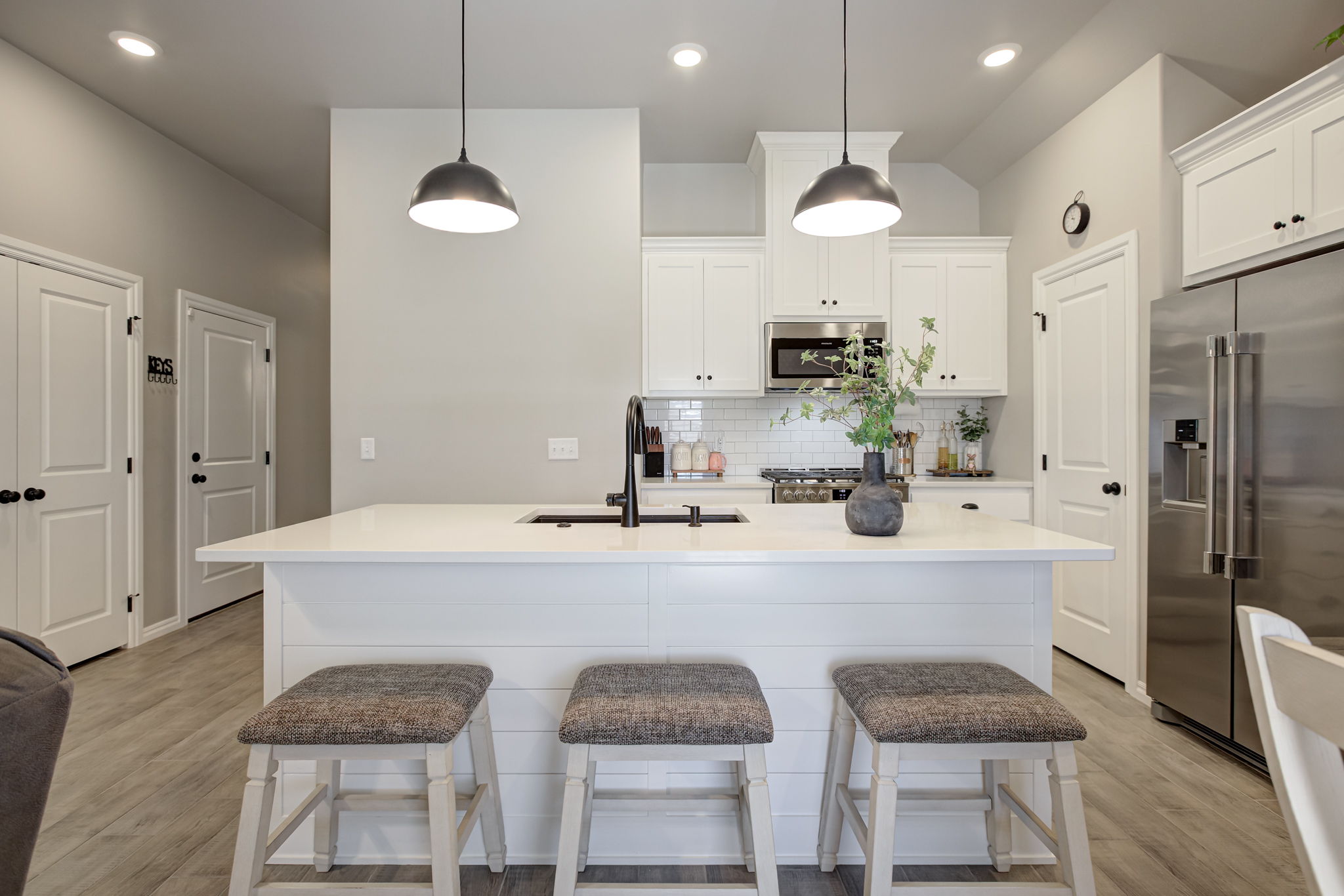 - Extended island with new quartz countertops