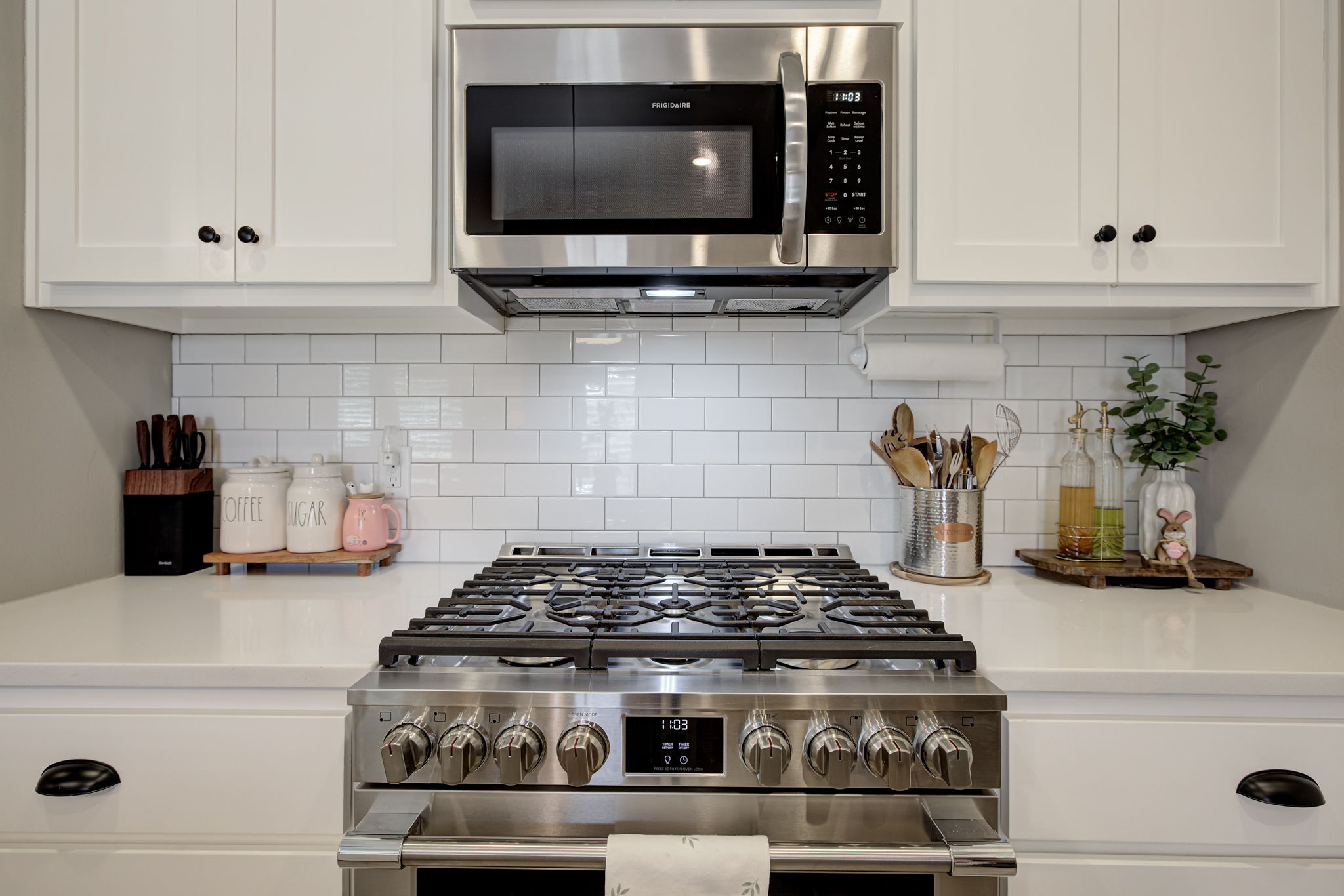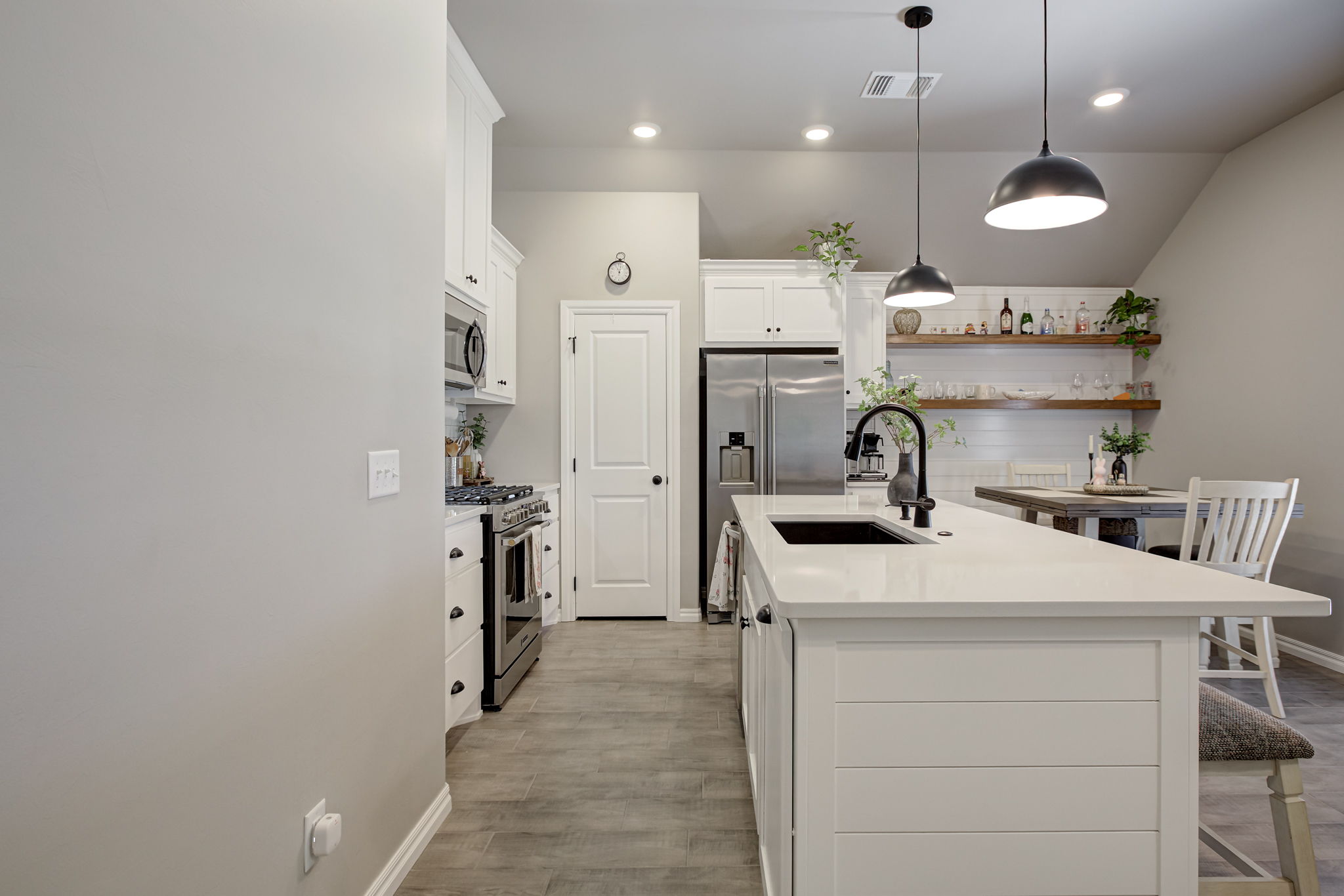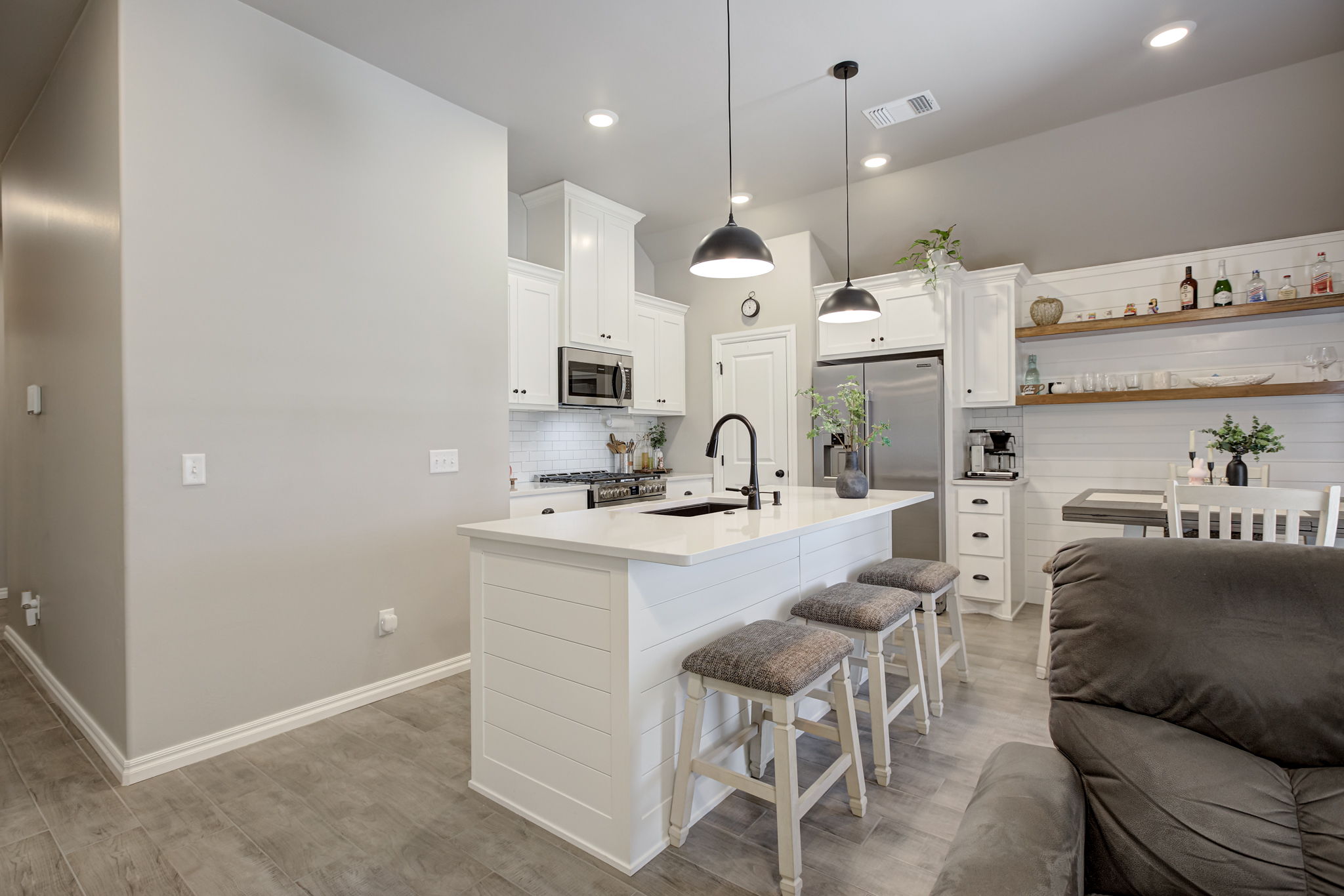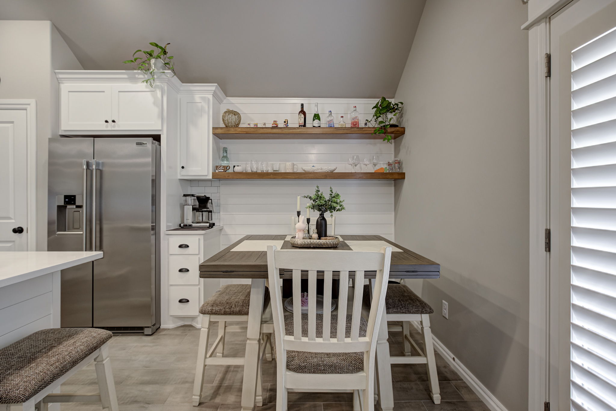 - Cozy eat-in dining area with custom coffee bar & open shelving