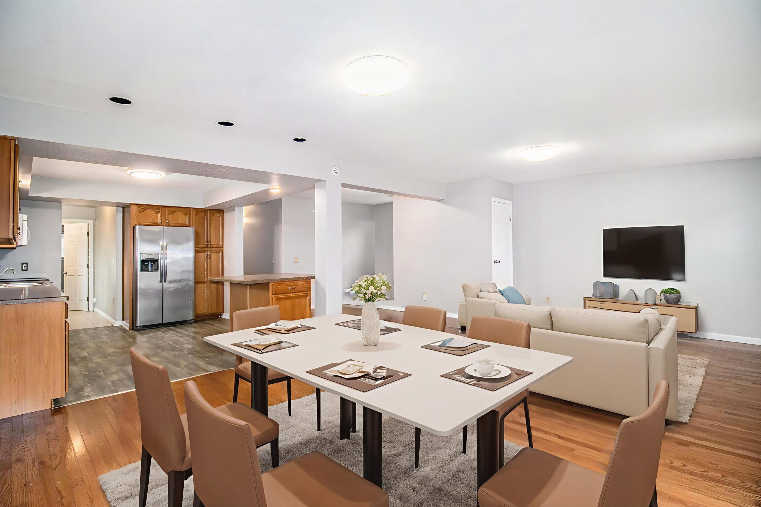 Step inside to find a comfortable living room that flows seamlessly into an expansive open-concept family and dining area—perfect for entertaining, hosting gatherings, or simply enjoying day-to-day living. The generous layout provides ample room for multiple seating arrangements and dining configurations.