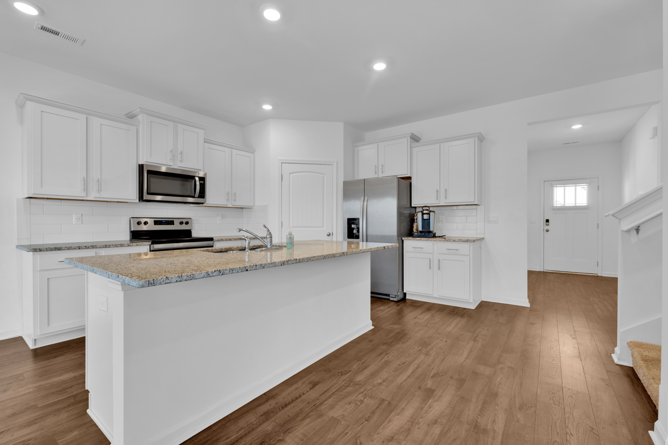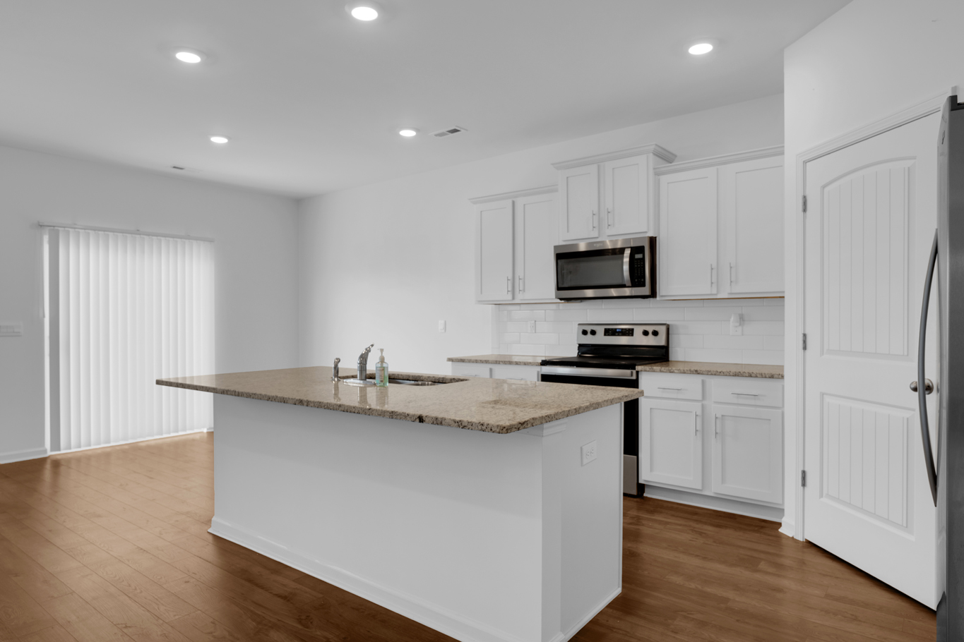 • Spacious kitchen with granite countertops, stainless steel appliances & generous dining area