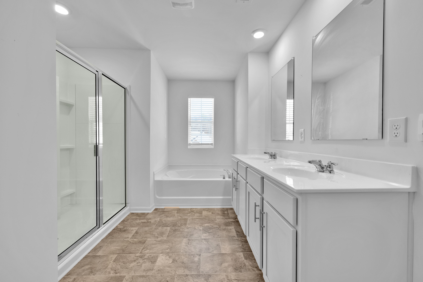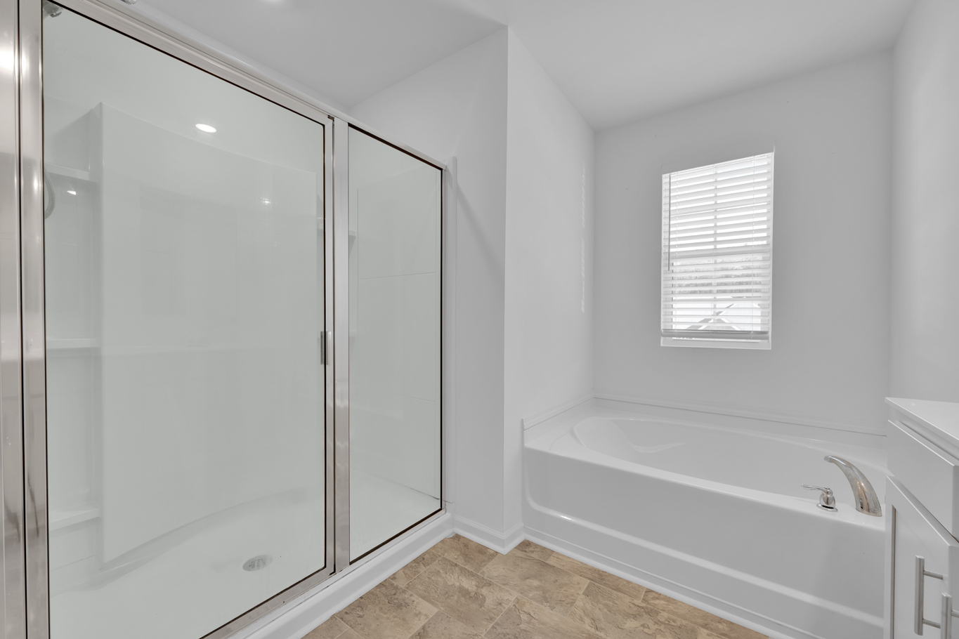• Spa-inspired en-suite bath featuring dual sinks, a 5′ shower & relaxing garden tub