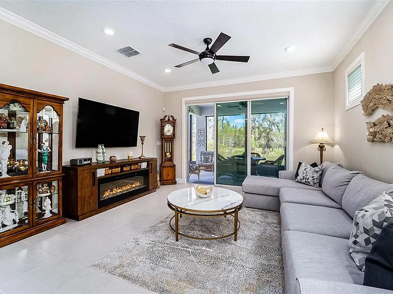 Enjoy everyday living and entertaining on the extended screened patio, where tranquil, picture-perfect views of the wetland preserve and wooded lot make this home a true retreat for nature lovers.