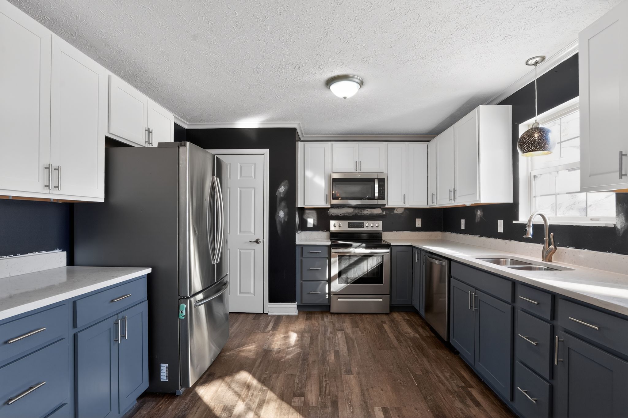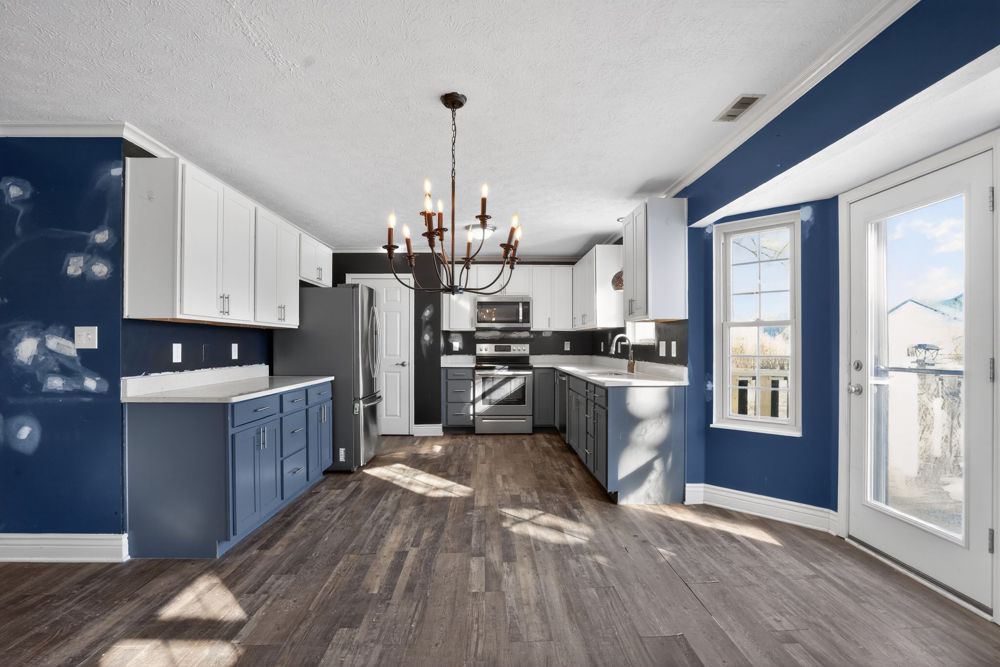 The well-appointed kitchen features sleek stainless-steel appliances, generous counter space, and a convenient pantry—ideal for meal prep, hosting, and daily routines. Whether you’re preparing weeknight dinners or holiday feasts, this kitchen is designed to perform.