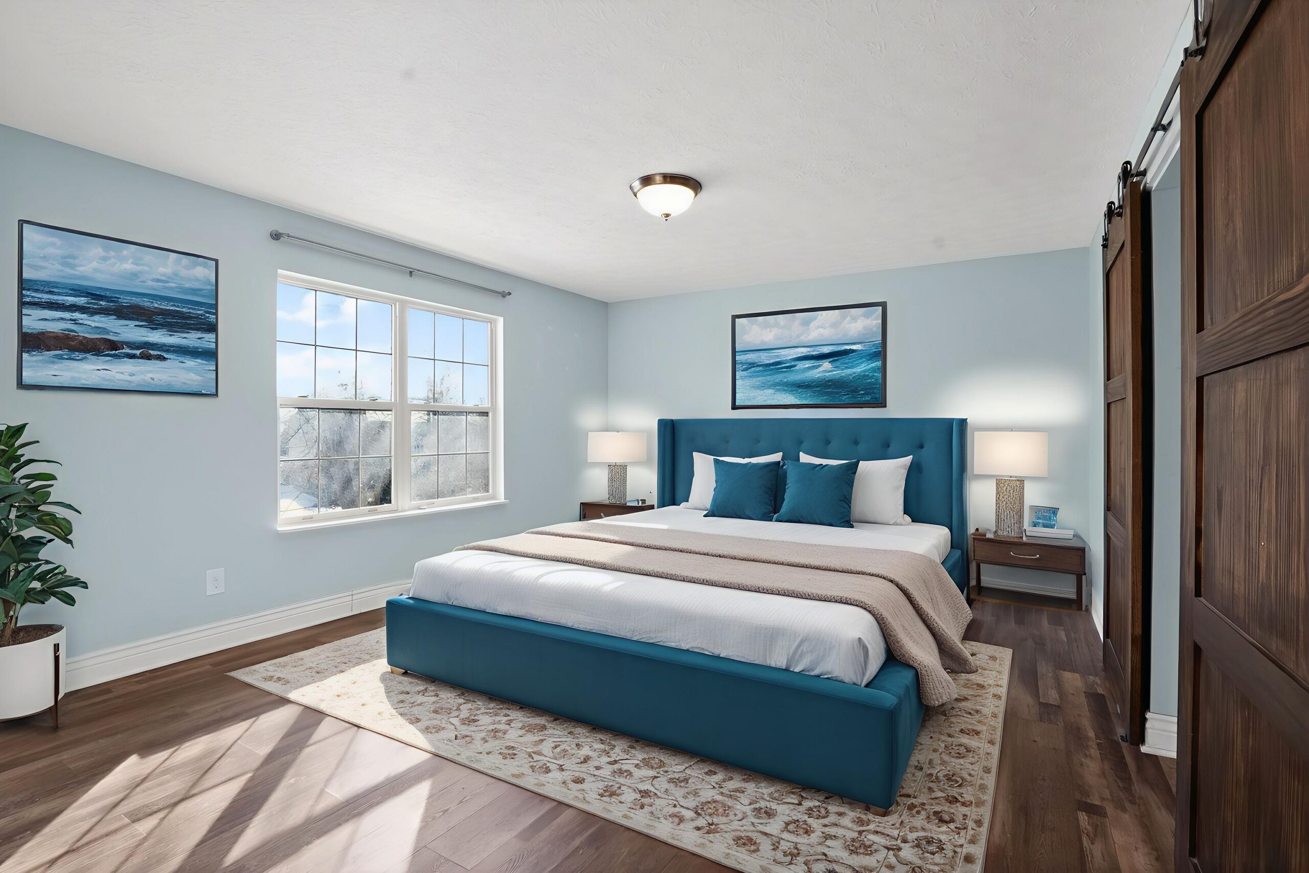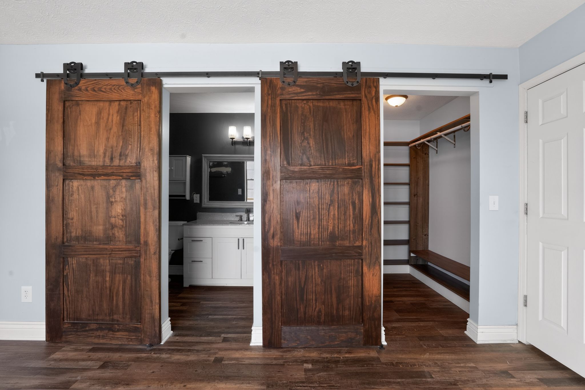 Upstairs, unwind in the spacious primary suite showcasing stylish barn doors that open to a large walk-in closet and a private en-suite bath complete with a beautifully tiled shower. Three additional bedrooms offer flexibility for guests, a home office, workout space, or growing households.
