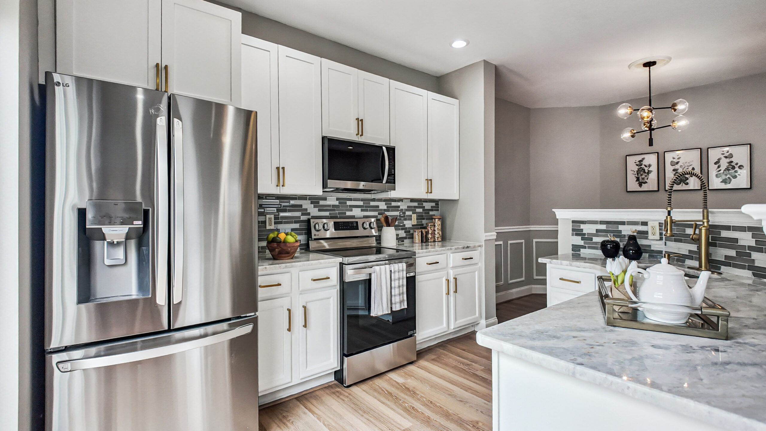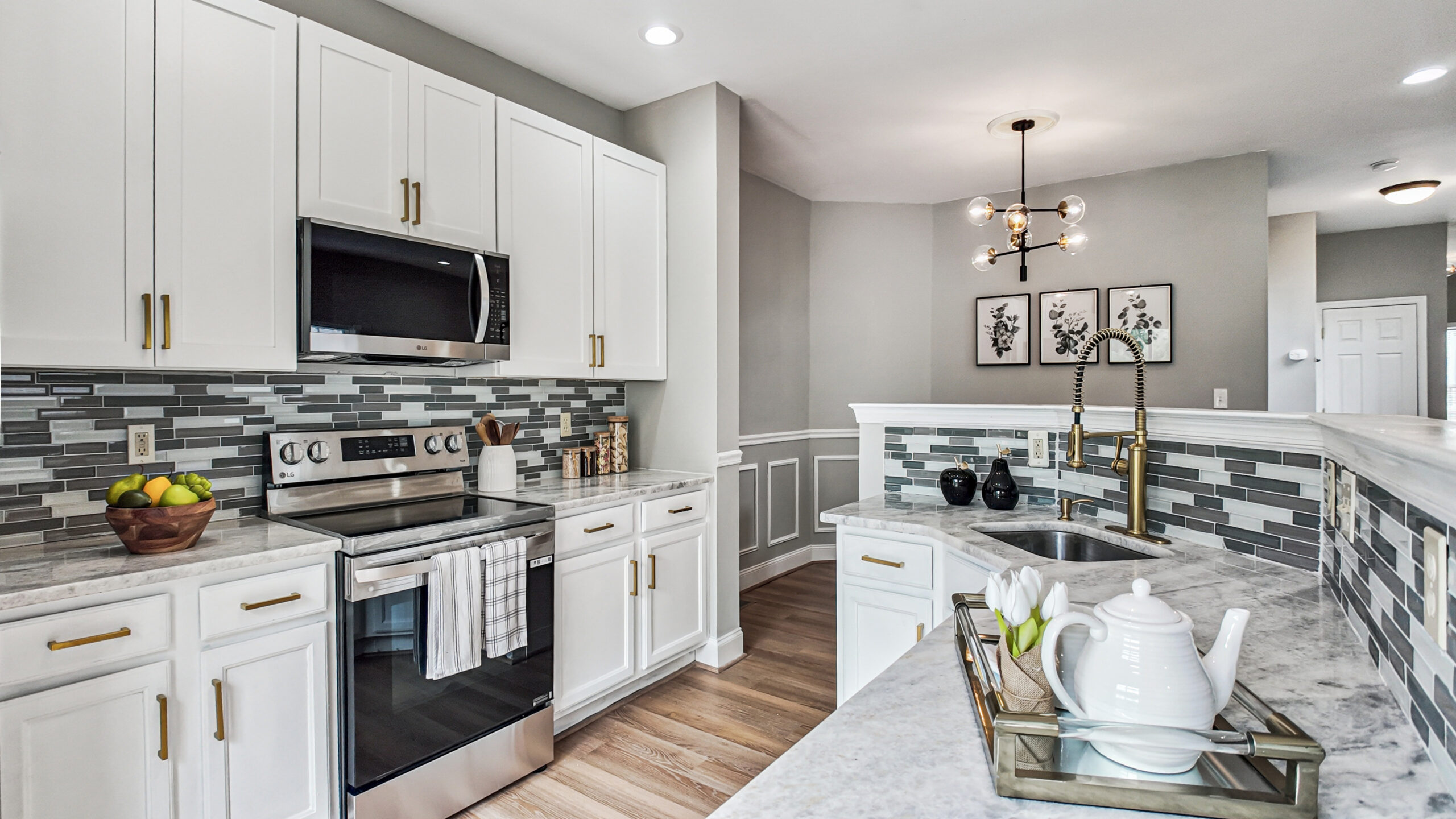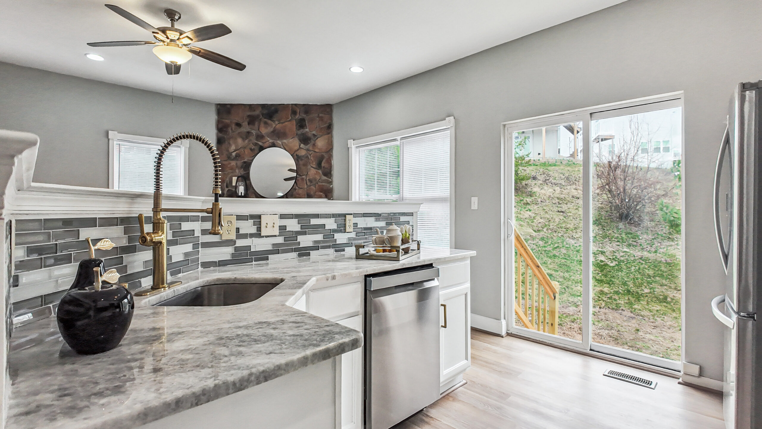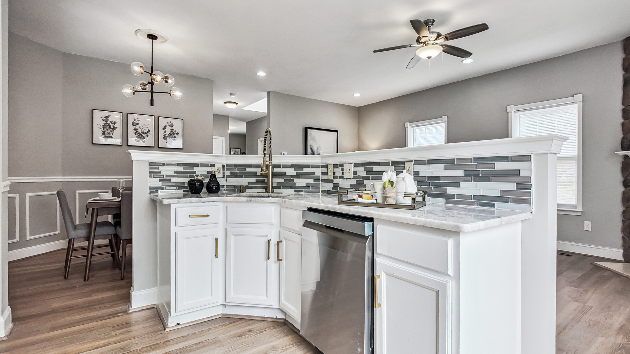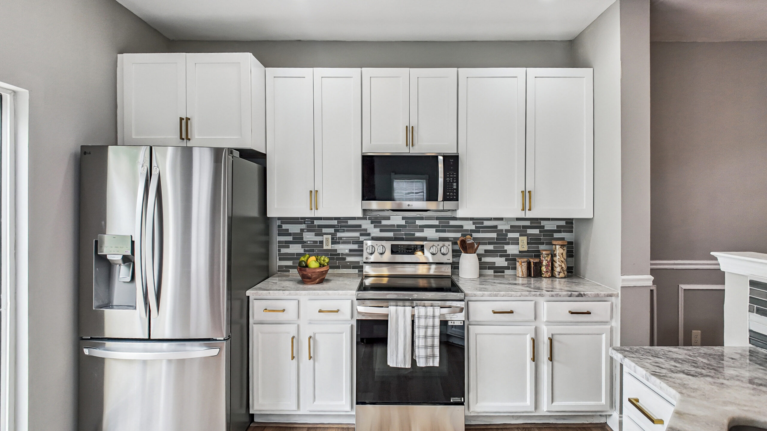 The updated kitchen is designed to impress with stylish stainless steel appliances, shaker-style cabinetry, marble countertops, a new tile backsplash, and a brand-new disposal. Fresh interior paint, new carpet, and modern LVP flooring throughout the home create a clean, updated feel in every room.